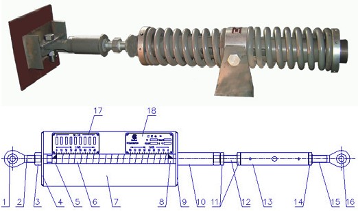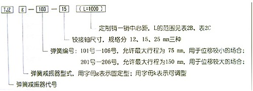 型号标记示例: TJZg - 103 - 15 (L=1000) 表示:铰接轴直径为15mm,弹簧编号为103号。定制销一销中心距L=1000mm的固定弹 簧减振器。 | |