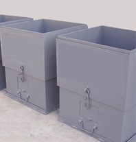 由于1974年编制的煤粉仓用铝膜板防爆门典型设计的设计动作压力为9.8KPa(表压),而煤粉仓顶盖的承压能力一般低于上述数字,故防爆门不能起到保护煤粉仓的作用。在重新修订出版的《火力发电厂烟风煤粉管道设计技术规范》(DL/T5121-2000)9.3.4条明确规定“煤粉仓上宜设置重力式防爆门”。故在本典型设计中补充列入煤粉仓用重力防爆门。本系列煤粉仓用重力防爆门按公称通径区分,编制规格为400×600~1000×1500等9种,设计动作压力为1KPa,选型时,根据煤粉仓容积,换算出防爆门截面积后,直接选用。